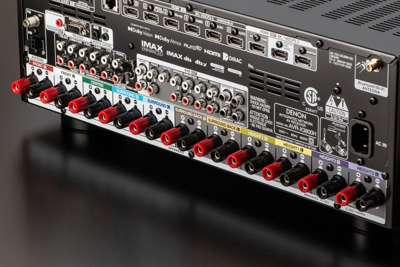 L’AVC-X6800H prend place au sommet de la série AVC-X. Il embarque 11 canaux d’amplification annoncés à 140 W/ch (8 Ω, 20 Hz–20 kHz, 0,05 %, 2 ch) et traite jusqu’en 13.4 canaux via ses pré-sorties 13.4, de quoi viser un 9.4.4.