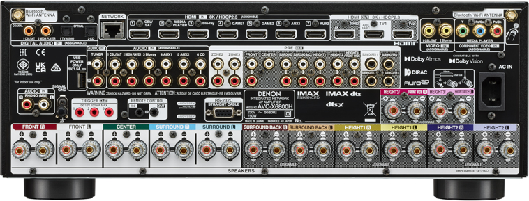 Côté vidéo, Denon a été parmi les premiers à généraliser un HDMI 2.1 “utile” (eARC, 4K/120, 8K/60, VRR/ALLM) sur plusieurs entrées, en privilégiant la compatibilité terrain avec consoles et lecteurs UHD récents plutôt que les effets d’annonce.