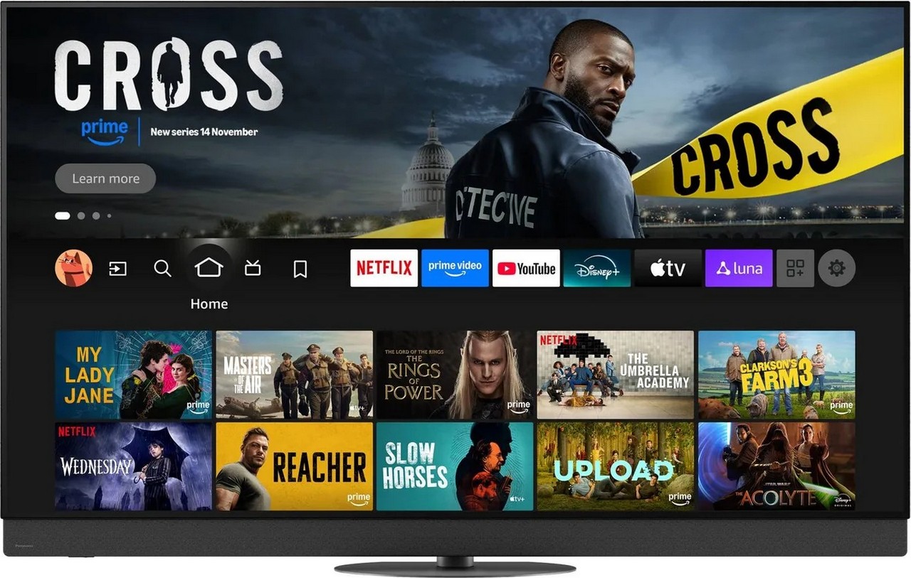 Enfin, Panasonic a choisi Fire TV comme plate-forme smart TV : interface Amazon, intégration d’Alexa, accès rapide aux services de streaming et recommandations personnalisées. L’ergonomie est fluide et complète, mais l’environnement Fire TV reste relativement chargé en contenus promotionnels, ce qui pourra diviser selon les préférences. Le Z95B est décliné en 55, 65 et 77 pouces, avec un design sobre (cadre fin, pied central souvent rotatif, bandeau audio textile).