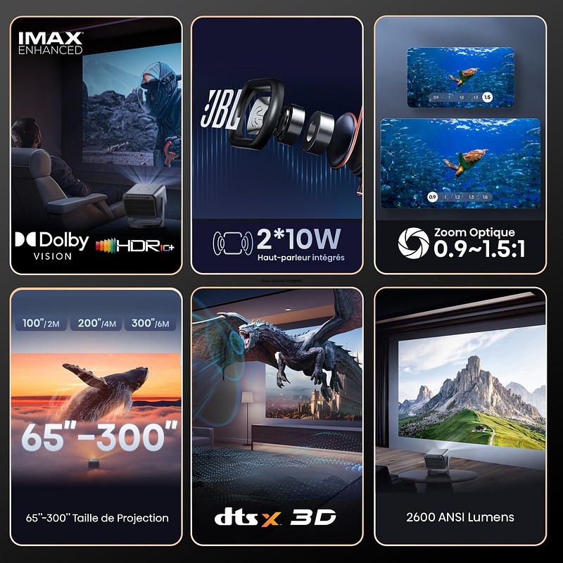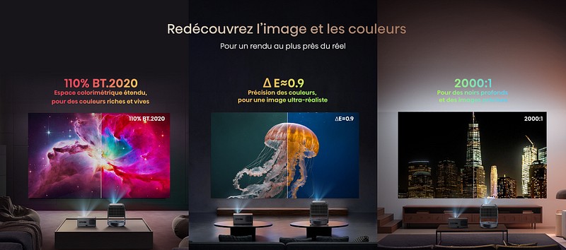 Sur le versant “divertissement”, plusieurs projecteurs arborent désormais le label Designed for Xbox, signe d’un mode faible latence et d’une meilleure prise en charge des hautes fréquences pour le jeu. Enfin, la promesse colorimétrique illustre la volonté de la marque de se distinguer par la richesse des teintes autant que par la puissance lumineuse.