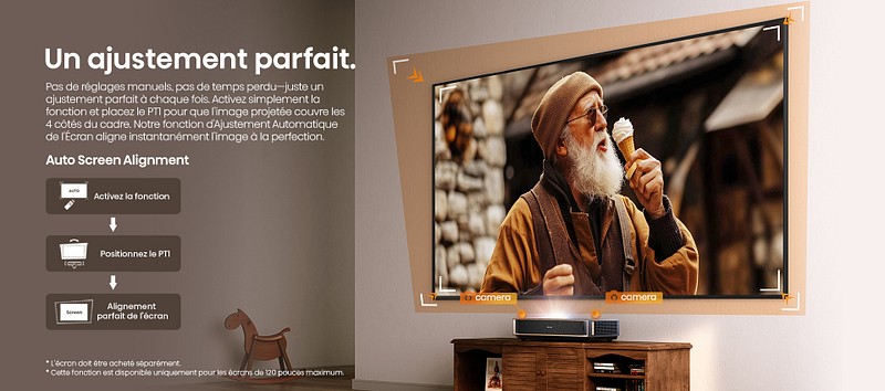 Cette base technologique irrigue aujourd’hui deux axes complémentaires : d’un côté, des mini-projecteurs “long-throw” conçus pour la polyvalence et la mobilité ; de l’autre, des UST (ultra-courte focale) qui s’installent au ras du mur pour remplacer un téléviseur jusqu’à 120–150 pouces, idéalement associés à une toile ALR dédiée. L’ambition est claire : offrir une image lumineuse et riche en couleur dans des salons partiellement éclairés, sans renoncer à une gradation HDR moderne.